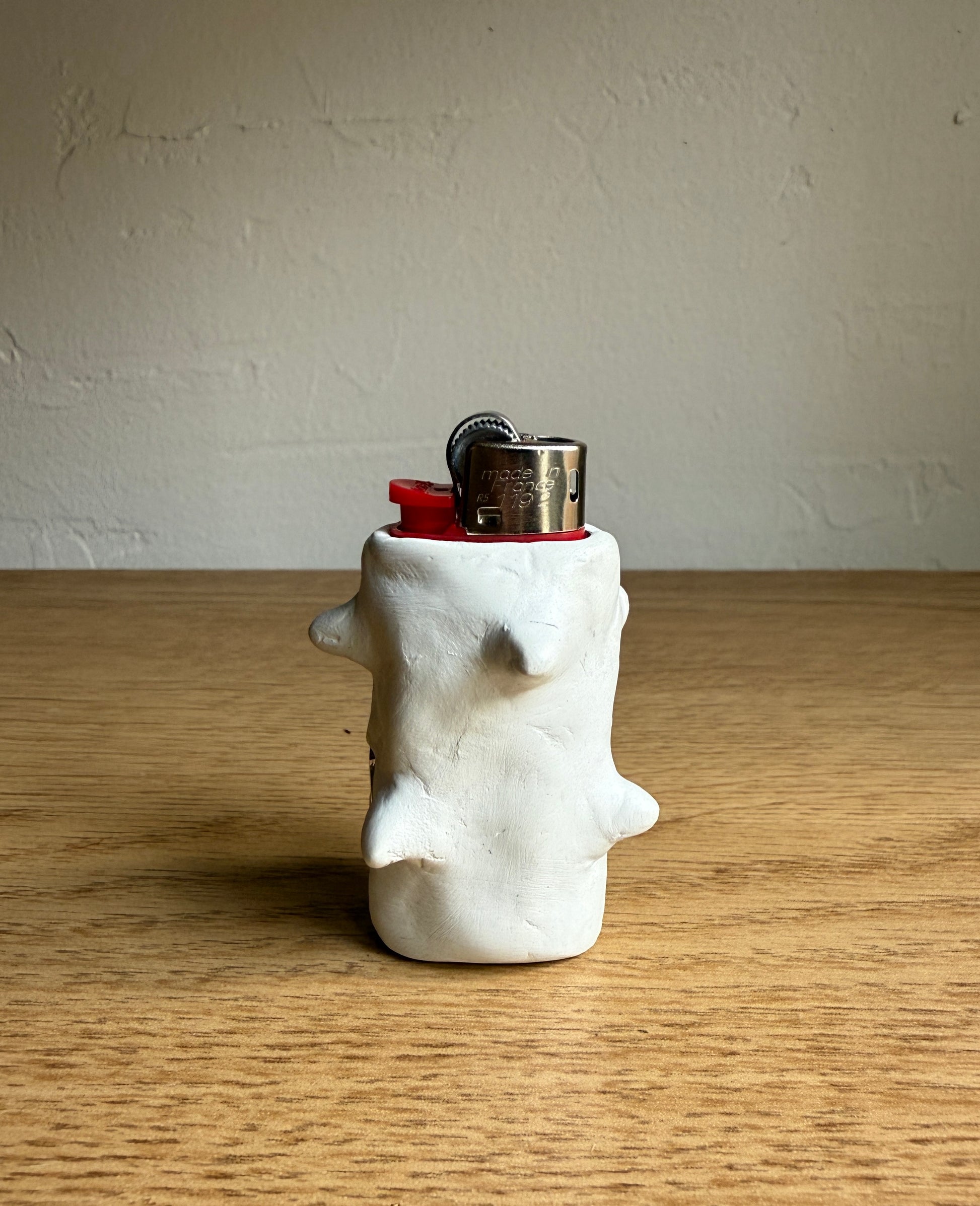 One hand-sculpted lighter case fits a mini BIC lighter. Features spikes and a smooth beach stone. Handmade from professional-grade sculpting materials.